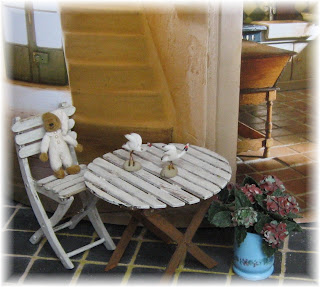 A beautiful box in exactly the color blue I have in my 1:1 house, a picture of Liberty, a little card with the message: Liberty made the sparkly eggs for you to hang somewhere and DO NOT OPEN THE PLASTIC EGGS UNTIL EASTER!